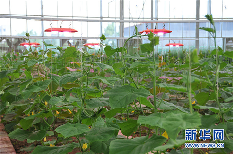烏蘭察布冷涼蔬菜院士工作站試驗基地溫室內(nèi),利用植物生長燈模擬日光,增強光合作用,提高產(chǎn)品質(zhì)量。新華網(wǎng) 周遠鋼 資料圖