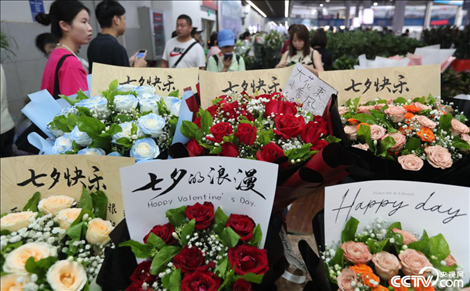 為迎接七夕,昆明斗南花市出現(xiàn)玫瑰花購(gòu)買熱潮。