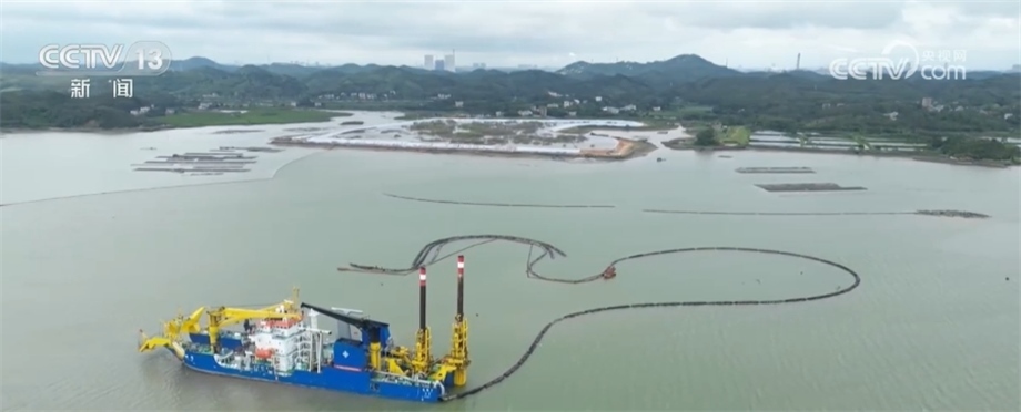 平陸運河集團廣西平陸運河建設(shè)有限公司總經(jīng)理 黎明鏡:它主要負責(zé)約5公里河段開挖,總開挖量約200萬立方米。通過絞吸船的挖泥方式,將疏浚的土石方經(jīng)過排泥管直接吹填至納泥區(qū),根據(jù)平陸運河地質(zhì)情況資料顯示,絞吸船日均吹填的土石方量可達2.5萬立方米,完成普通疏浚船舶無法完成的快速挖巖任務(wù)。?
