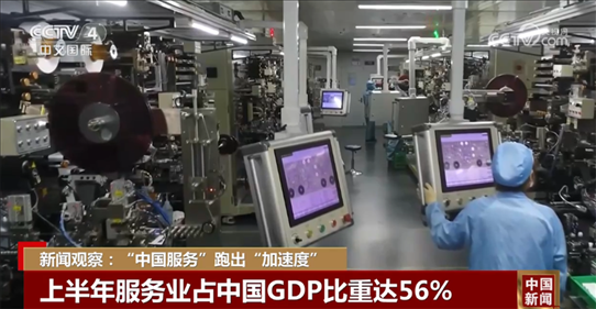 商務(wù)部國(guó)際貿(mào)易談判代表兼副部長(zhǎng)王受文說(shuō),今年上半年,中國(guó)服務(wù)業(yè)占GDP比重達(dá)56%,對(duì)經(jīng)濟(jì)增長(zhǎng)的貢獻(xiàn)率為66%,服務(wù)業(yè)利用外資占到中國(guó)全部利用外資的70%。