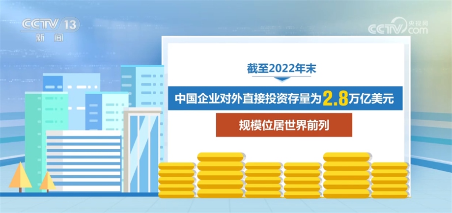截至2022年末,中國(guó)企業(yè)對(duì)外直接投資存量為2.8萬(wàn)億美元,規(guī)模位居世界前列。近年來(lái),中資企業(yè)向東道國(guó)年均繳納各種稅費(fèi)超500億美元,拉動(dòng)當(dāng)?shù)鼐蜆I(yè)近250萬(wàn)人。