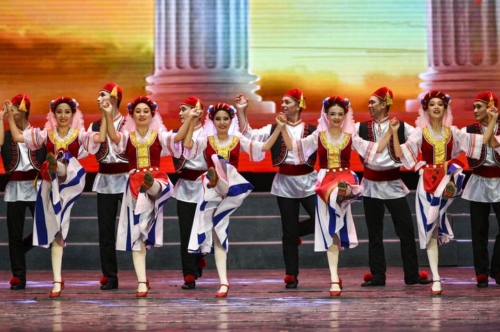 7月21日,哈薩克斯坦薩爾塔納國家舞蹈團(tuán)在新疆人民劇場登臺(tái)首演,為觀眾帶來歌舞晚會(huì)《富饒的家鄉(xiāng)》。