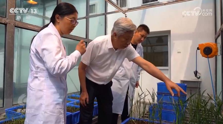 在河南省農(nóng)業(yè)科學(xué)院的玻璃溫室,50株剛剛破土一個(gè)月的小麥新品種幼苗長勢不錯(cuò)。小麥品種的培育者——小麥育種專家許為鋼院士帶著團(tuán)隊(duì)細(xì)心地查看這些幼苗。