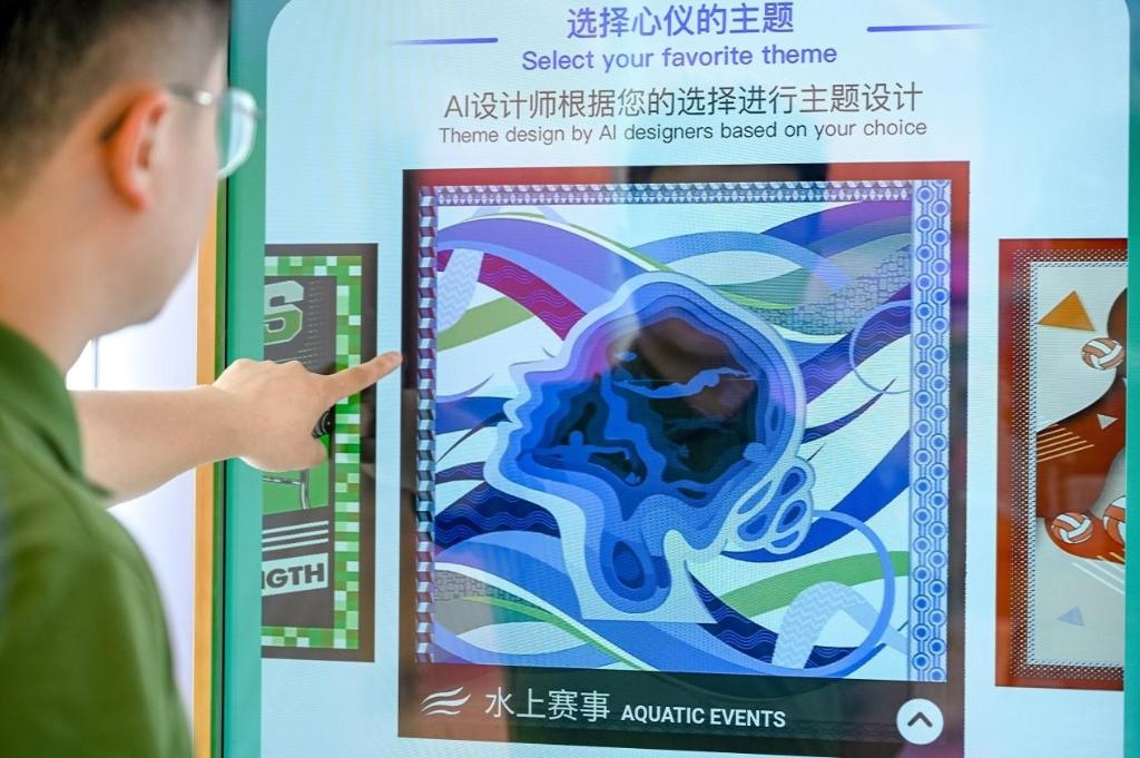 圖為杭州亞運(yùn)會AI絲巾定制體驗(yàn)區(qū)。(圖片由采訪對象提供)