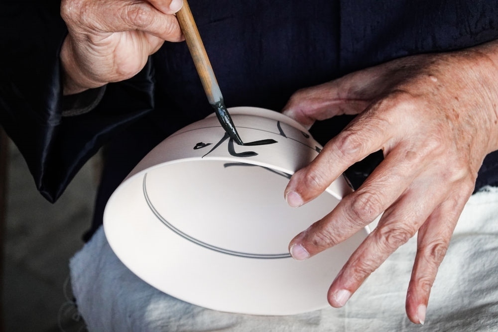手工藝人師徒在陶陽里歷史文化街區(qū)展示畫坯(2023年10月11日攝)。