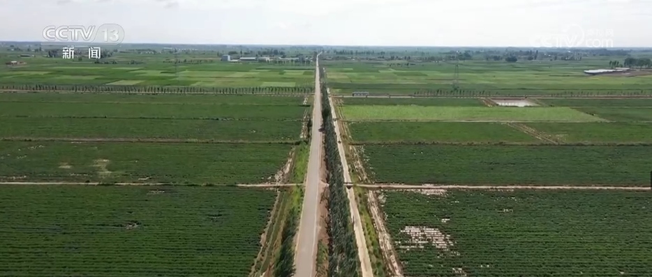 2017年,巴彥淖爾市規(guī)劃了484萬畝鹽堿化耕地“改鹽增草(飼)興牧”示范工程,拉開了全市改良鹽堿地的序幕。通過大規(guī)模土地整理,愛國村零散的土地被整合了起來?,F(xiàn)在行走在愛國村的田間地頭,遠看路相連、渠相通、溝配套。近看有新的發(fā)現(xiàn),在地下40公分的位置,鋪設(shè)了一層秸稈,鹽隨水來、隨水去。在水分向上蒸發(fā)的同時,能保證鹽分被阻攔在秸稈下面,這個被稱為“上膜下秸”技術(shù)。而對于重度鹽堿地,當?shù)卦诘叵?.8米的位置,每隔50公分鋪設(shè)了一些排水管道,能保證地下的水分隨時通過這些管道流到排水井里,最大程度地讓作物不受傷害,耕地質(zhì)量提高1—2個等級。
