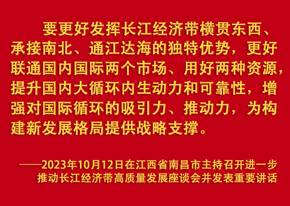 10月12日,中共中央總書記、國家主席、中央軍委主席習(xí)近平在江西省南昌市主持召開進一步推動長江經(jīng)濟帶高質(zhì)量發(fā)展座談會并發(fā)表重要講話。