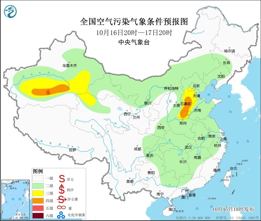 16日至18日上午,華北中南部等地大氣擴(kuò)散條件一般,其中17日夜間至18日早晨,霾天氣逐漸向北發(fā)展,華北中部有輕至中度霾。18日午后起,受冷空氣和降水影響,區(qū)域霾天氣減弱消散。19日至21日,區(qū)域大部大氣擴(kuò)散條件較好。
