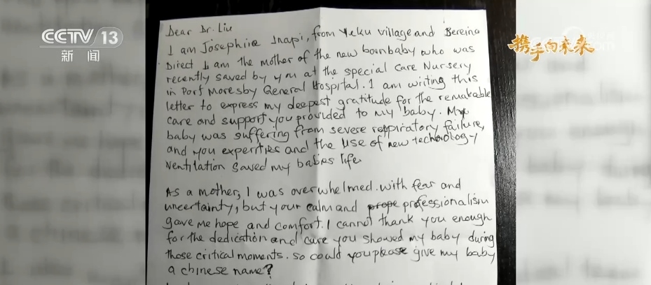 隨著呼吸機開始正常運轉(zhuǎn),患兒的重要生命體征也重回正常范圍內(nèi)??吹胶⒆用撾x呼吸機的那一刻,患兒母親喬瑟菲·伊奈皮握著劉振球的手不停說謝謝。事后,她專門寫了一封信表達自己的感激之情。她在信中說:“作為一個母親,我被恐懼和不確定所淹沒,但你的鎮(zhèn)靜和專業(yè)給了我希望和安慰。我要感謝整個中國醫(yī)療隊來到巴布亞新幾內(nèi)亞?!边@次中國醫(yī)生成功挽救巴新新生兒的事跡,迅速在當(dāng)?shù)匾饛娏曳错?,巴新多家主流媒體進行了廣泛報道。