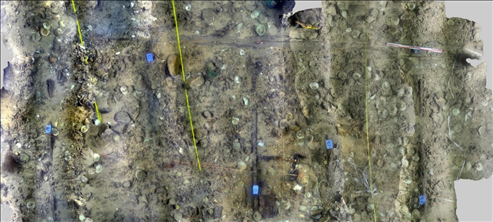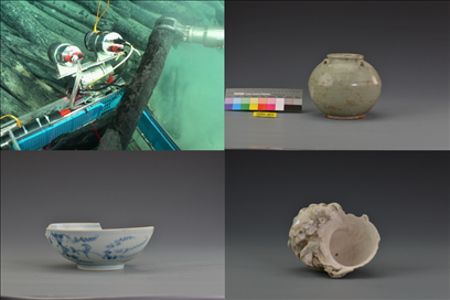 經(jīng)過調(diào)查,探明了一號、二號沉船遺址的分布范圍,在二處遺址核心堆積區(qū)的西南角布放水下測繪永久基點(diǎn),完成了遺址三維激光掃描和一號沉船遺址核心區(qū)、環(huán)形散落區(qū)、部分條形散落區(qū)和二號沉船遺址核心區(qū)、散落區(qū)的攝影拼接,從一號沉船遺址提取出水文物標(biāo)本543件(套),二號沉船遺址提取出水遺物36件。