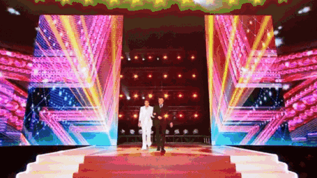 想象中的場景,可能是在聚光燈下,伴著丁達爾現(xiàn)象投射的粉塵光柱,看他帶著招牌笑容走來;也許是在幕布后邊黑乎乎的候場區(qū),看他熟練地繞開腳下的各種道具和電纜,拿著提詞手卡和工作人員討論細節(jié);又或者是在一個燈火通明的圓形會議室里,看他坐在有他名字的桌牌前,握著桌上的臺式小麥克風發(fā)言……