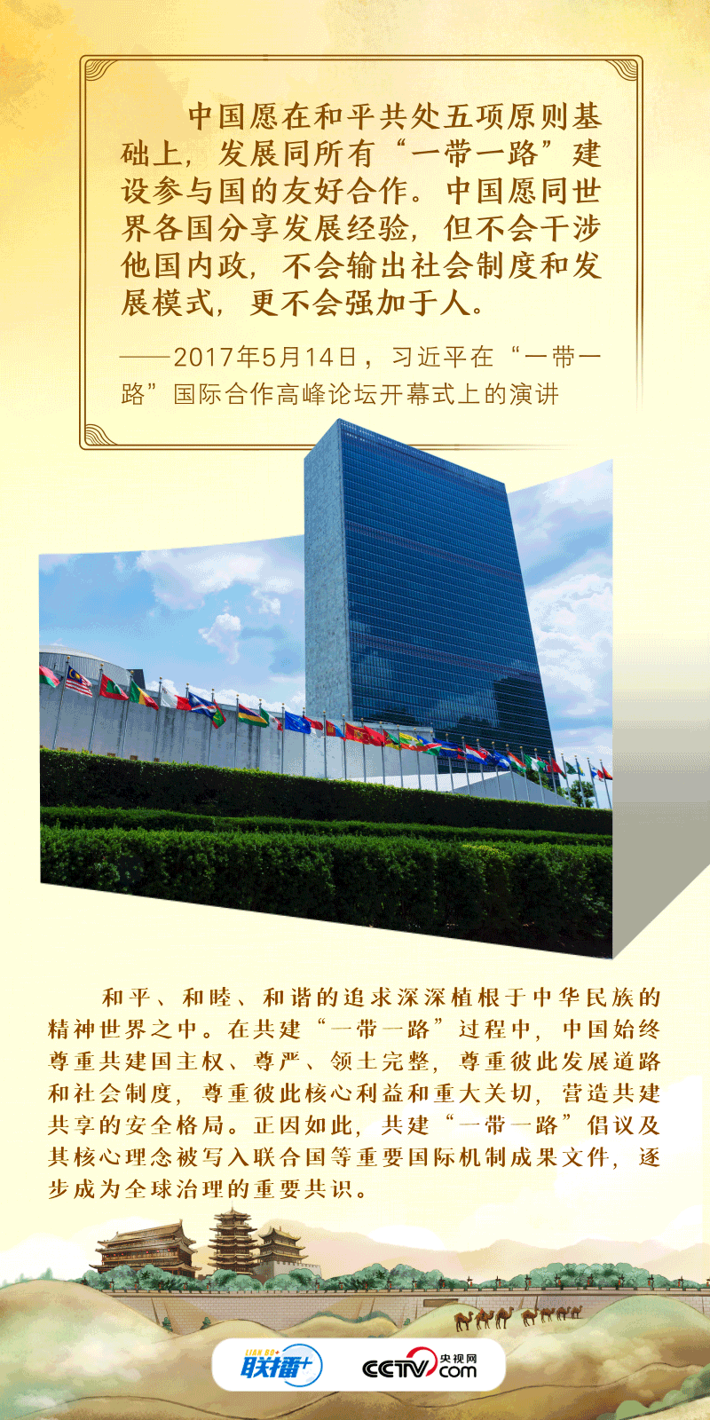 “古絲綢之路綿亙萬里、延續(xù)千年,積淀了以和平合作、開放包容、互學互鑒、互利共贏為核心的絲路精神?!?017年,習近平主席在首屆“一帶一路”國際合作高峰論壇開幕式上系統(tǒng)闡述了絲路精神的內涵,倡議將“一帶一路”建成和平之路。