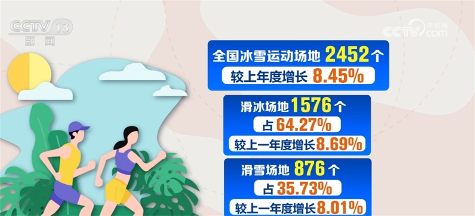 據(jù)統(tǒng)計,截至2022年底,我國健身步道共計12.78萬個,達31.42萬公里,較2021年分別增長20.68%、19.29%。其中,由中國登山協(xié)會認定的國家登山健身步道示范工程,截至2023年6月底有32條已建成并投入使用,共計超過3000公里。此外,全國冰雪運動場地2452個,較上年度增長8.45%。其中,滑冰場地1576個,占64.27%;滑雪場地876個,占35.73%,分別較上一年度增長8.69%、8.01%。