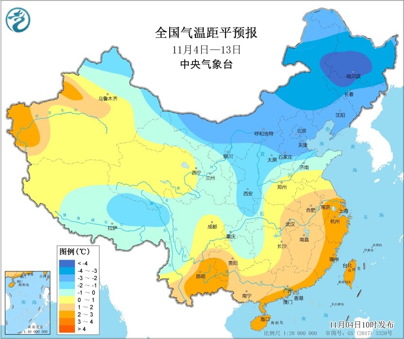 未來10天(11月4-13日),東北大部地區(qū)累計降水量有10~20毫米,東部部分地區(qū)有30~60毫米;江淮、江南、華南西部和北部等地累計降水量有20~60毫米,局地超過90毫米;上述大部地區(qū)累計降水量較常年同期偏多5成至1倍。