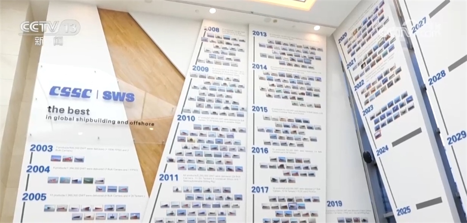 總臺央視記者 吳天白:在中國船舶外高橋造船,我們發(fā)現(xiàn)了這樣一面墻,墻上一共貼著553張已交付船型的照片。從最早的散貨船、原油船,再到超大型液化氣船、自升式鉆井平臺,包括今天要貼到這面墻上的國產(chǎn)首艘大型郵輪。我們可以看到,隨著時間的推移,交付船型的附加值變得越來越高,這也體現(xiàn)著我國造船能力質(zhì)的飛躍。