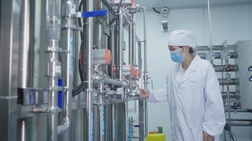 天津華龕生物科技有限公司員工在操作制水機設(shè)備。新華社記者 王寧 攝