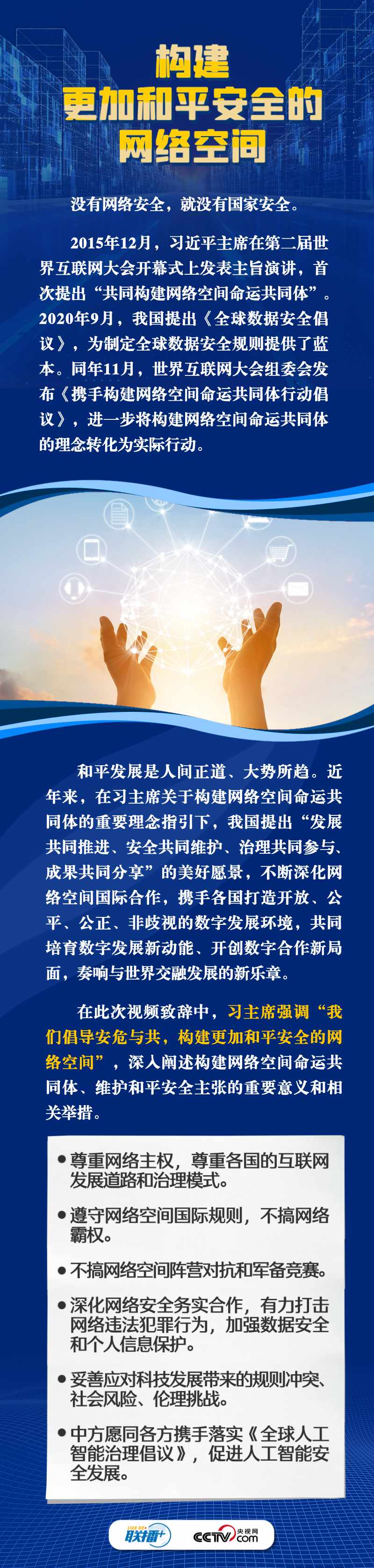 面對(duì)新的時(shí)代課題,習(xí)主席在此次視頻致辭中倡導(dǎo)構(gòu)建更加普惠繁榮、更加和平安全、更加平等包容的網(wǎng)絡(luò)空間。這三個(gè)“網(wǎng)絡(luò)空間”具體內(nèi)容是什么?構(gòu)建網(wǎng)絡(luò)“新空間”有什么具體措施?央視網(wǎng)《聯(lián)播+》與您一同學(xué)習(xí)。