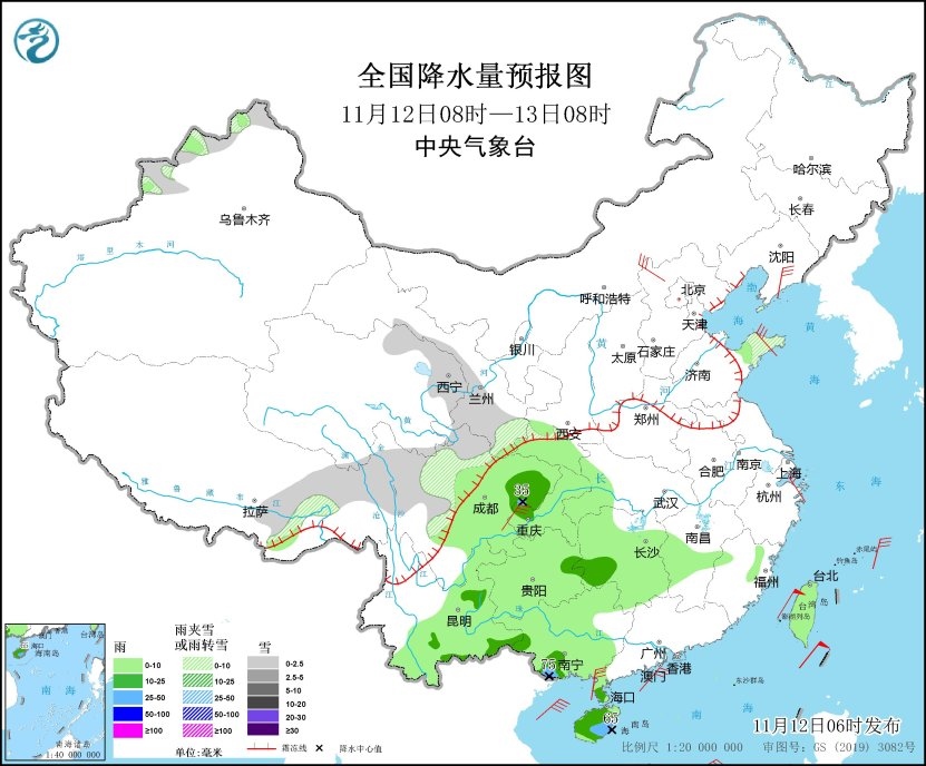 預計12日至13日,江淮南部、西南地區(qū)東部、江南中東部、華南及青藏高原中東部等地最低氣溫或日平均氣溫累計降溫4~8℃,其中廣西南部、青藏高原中東部等地氣溫將下降8~10℃、局地10~12℃。此次過程最低氣溫將出現(xiàn)在13日至14日早晨,最低氣溫0℃線位于黃淮南部至江淮北部一線,江漢、江淮南部、江南北部、貴州北部和東部等地最低氣溫將降至2~4℃。
