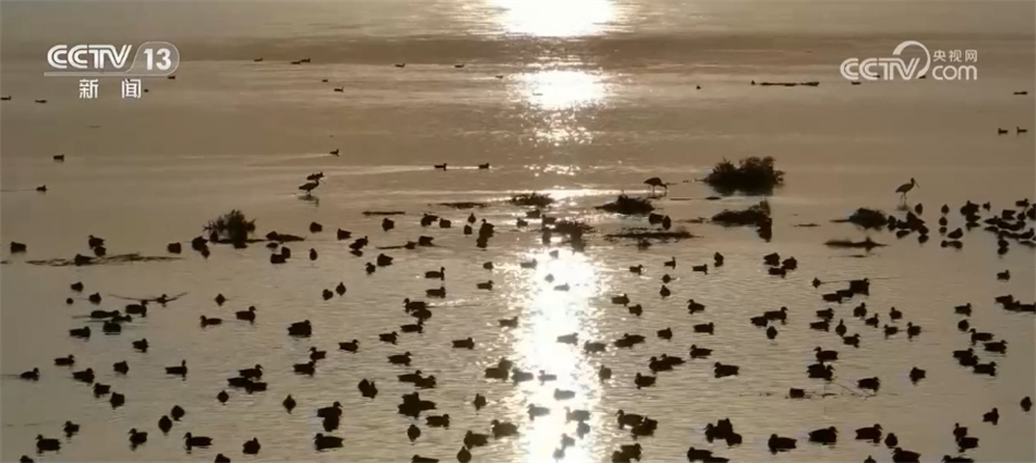 ?????? 眼下正是候鳥南遷的季節(jié),在內(nèi)蒙古鄂爾多斯市黃河流經(jīng)沿岸,聚集了大批南遷候鳥,其中有天鵝、蒼鷺、赤麻鴨、綠頭鴨等10多個種類,它們或是在水中和岸上悠然地休憩,或是聚精會神地飽餐一頓,或是振翅在空中翱翔。在落日余暉的映襯下,一派和諧靈動的生態(tài)畫卷躍然眼前。