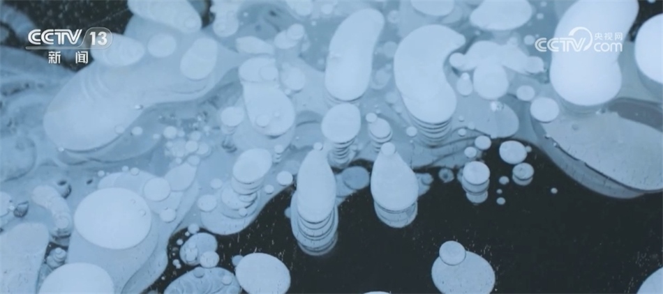 據(jù)了解,“冰泡”形成的主要原因是湖中茂盛的水草在衰敗腐爛之后釋放出沼氣。冬季,在氣源充足的情況下,當(dāng)氣溫從0℃跌落至零下20℃后,一個個上升的氣泡還來不及“跑”出湖面,便被冰封在湖水之中。