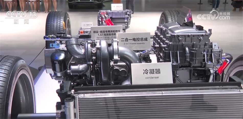 在1100多臺(tái)展車中,新能源車占比超過40%,達(dá)到469臺(tái),其中,中國(guó)品牌展出的數(shù)量為350臺(tái)。不僅是展車的數(shù)量上占了絕大多數(shù),中國(guó)品牌在新技術(shù)上也在不斷更新迭代。眼前的這個(gè)超級(jí)電驅(qū)智能技術(shù)平臺(tái),其最核心的部件——增程器,參展企業(yè)研發(fā)到了第三代,最高油電轉(zhuǎn)換率比第二代提高了近10%。