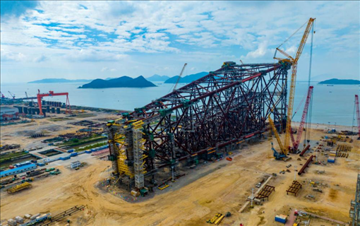 ·“?;枴鄙钏畬?dǎo)管架主體結(jié)構(gòu)完工,刷新兩項亞洲紀錄。
