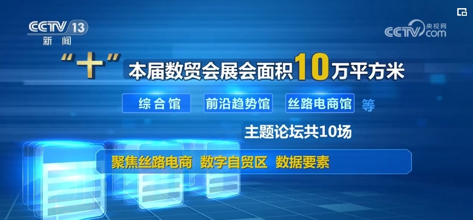 “十”:本屆數(shù)貿(mào)會(huì)展會(huì)面積10萬平方米,分為綜合館、前沿趨勢(shì)館、絲路電商館等。主題論壇共10場(chǎng),聚焦絲路電商、數(shù)字自貿(mào)區(qū)、數(shù)據(jù)要素治理等主題。