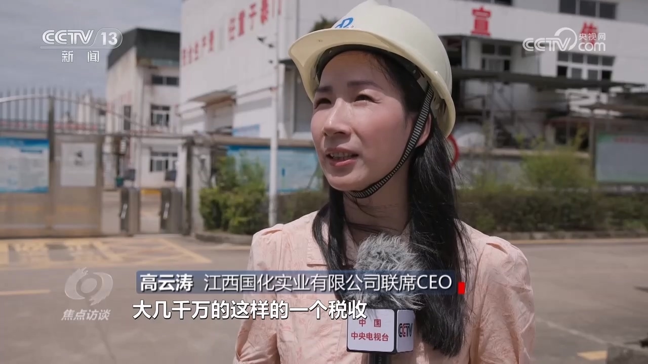 江西國化實(shí)業(yè)有限公司聯(lián)席CEO高云濤:“我們基本上每年要交大幾千萬的稅收,從稅收貢獻(xiàn)和經(jīng)濟(jì)貢獻(xiàn)上,對(duì)當(dāng)?shù)貋碚f肯定是比較核心的?!?/p>