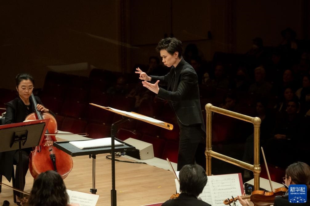 11月24日,中央音樂學(xué)院指揮家陳琳在美國(guó)紐約卡內(nèi)基音樂廳執(zhí)棒本次演出。新華社發(fā)(邁克爾·維奧拉果攝)