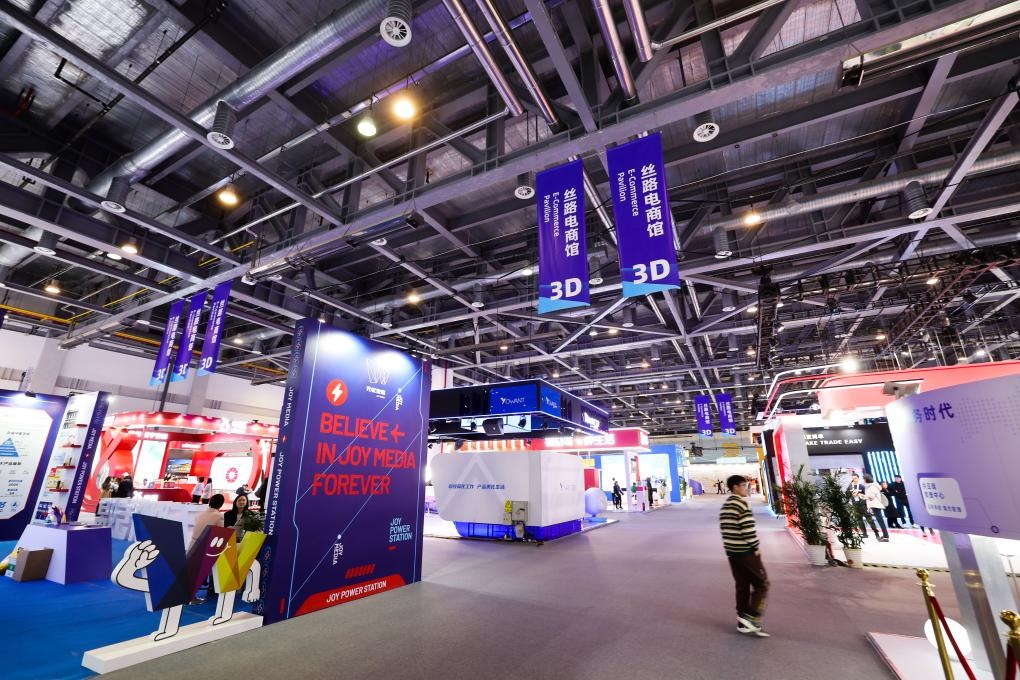 這是11月23日拍攝的第二屆全球數(shù)字貿(mào)易博覽會絲路電商館。新華社記者 徐昱 攝
