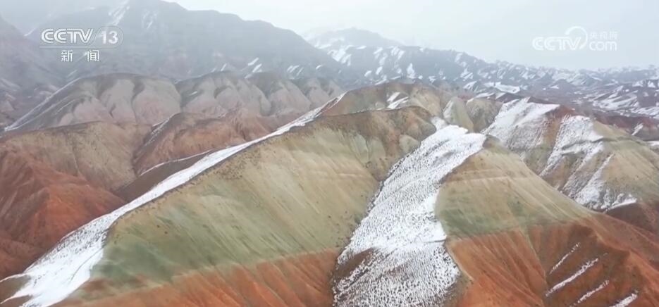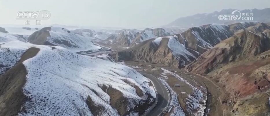 近日,一場大雪讓昌吉百里丹霞風(fēng)景道如同童話世界一般。沿著S101省道一路向西,從高處俯瞰丹霞,高山南北坡呈現(xiàn)截然不同的風(fēng)光。雪落北坡把層巒疊嶂的山脈裝扮得如水墨丹青,而南坡陽光普照,五彩丹霞盡顯婀娜多姿。
