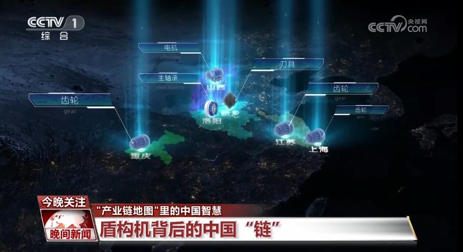 盾構(gòu)機(jī)又稱“鋼鐵穿山甲”,是開挖隧道的利器。一臺(tái)盾構(gòu)機(jī)拆解下來,由1萬多個(gè)零部件組成?,F(xiàn)在我們看到的是這些零部件的“產(chǎn)業(yè)鏈地圖”??梢钥吹?,刀具和主軸承主要聚集在河南,電機(jī)主要是在山西,齒輪主要分布在長三角和重慶。而如果回到十年前,當(dāng)時(shí),這條產(chǎn)業(yè)鏈上還存在一些短板和斷點(diǎn)。像軸承、減速機(jī)、刀具這樣的關(guān)鍵部件,國內(nèi)企業(yè)還制造不了??扇缃瘢軜?gòu)機(jī)“心臟”核心零部件的關(guān)鍵技術(shù)已經(jīng)突破。我國盾構(gòu)機(jī)的上下游企業(yè)已經(jīng)有上千家,僅中鐵裝備,盾構(gòu)機(jī)訂單總數(shù)就超過1600臺(tái),出口全球30多個(gè)國家和地區(qū),產(chǎn)銷量連續(xù)六年世界第一。