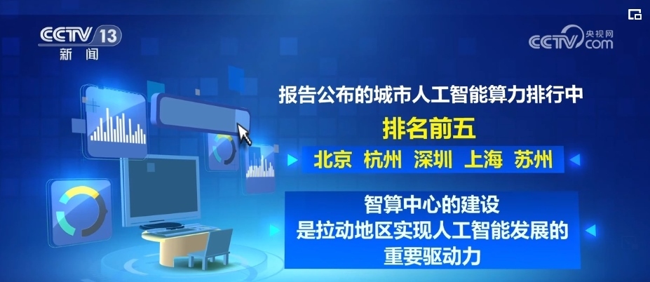 從地區(qū)分布看,《報告》公布的城市人工智能算力排行中,北京,杭州,深圳、上海、蘇州排名前五,智算中心的建設是拉動地區(qū)實現(xiàn)人工智能發(fā)展的重要驅(qū)動力。