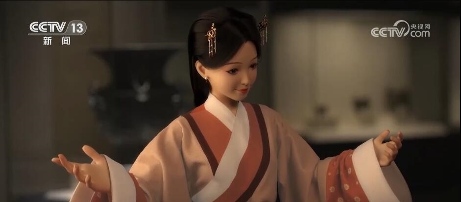 數(shù)智人“艾雯雯”的形象設(shè)計(jì)凝聚著中國國家博物館館藏古代服飾的研究成果,數(shù)字編程設(shè)計(jì)者對(duì)中國女性容貌審美的領(lǐng)悟。身著素雅襦裙,紅色丹脂點(diǎn)唇,盡顯漢代女子的溫婉。今年11月,中國國家博物館文物活化利用新成果——中華文明云展試點(diǎn)上線,在“古代中國”展廳,她作為一名虛擬數(shù)智人與館藏文物產(chǎn)生神奇感應(yīng),獲得了讓“文物活起來”的獨(dú)特能力,驚艷全場(chǎng)。