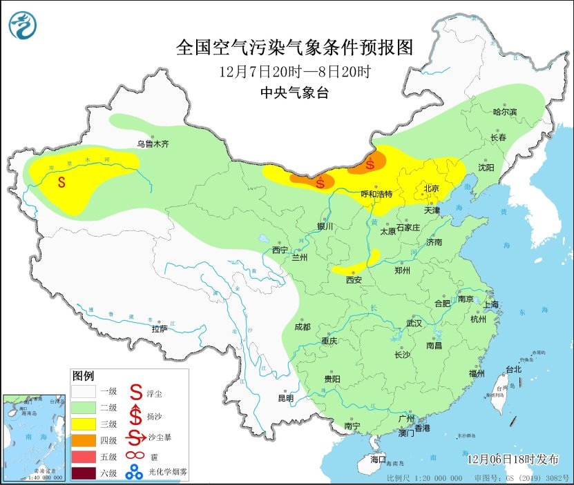 6日夜間至7日,內(nèi)蒙古中西部、甘肅西部、陜西北部等地的部分地區(qū)有揚沙或浮塵天氣。
