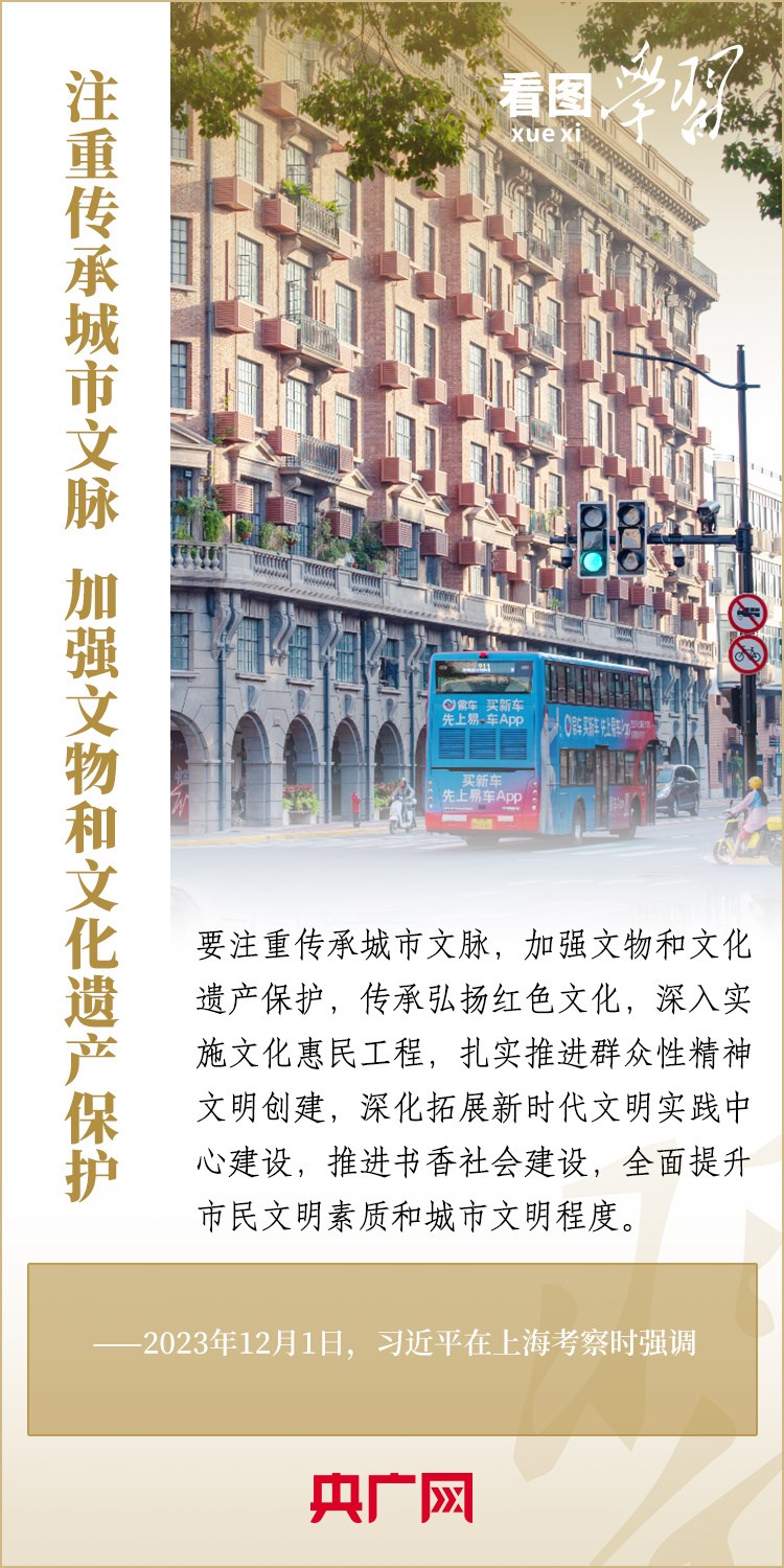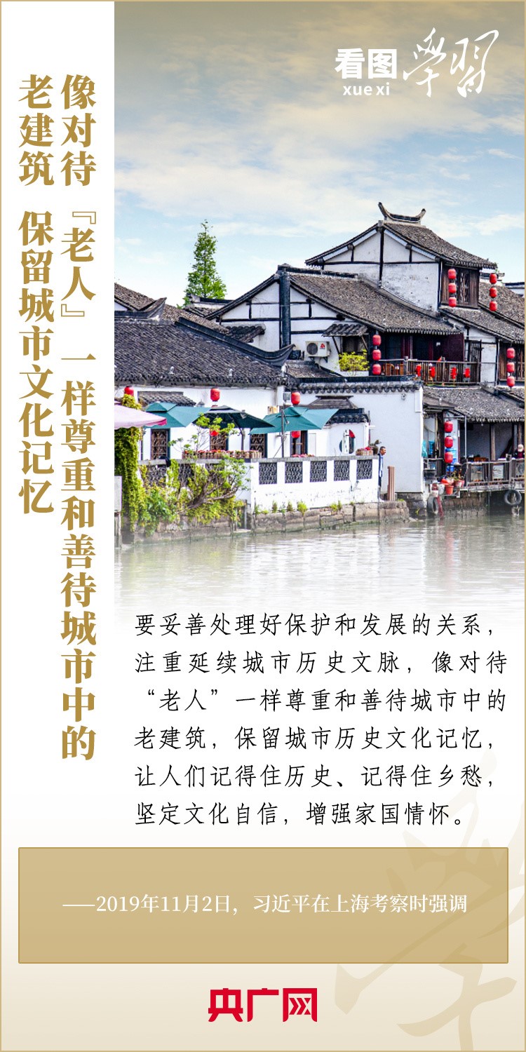 歷史是一座城市的記憶,文化是一座城市的靈魂。守護(hù)城市的歷史文化,就是守護(hù)城市的生命力。習(xí)近平總書記在歷次國內(nèi)考察中多次作出深刻闡述。近日,總書記在上??疾鞎r,要求上海加快建成具有世界影響力的社會主義現(xiàn)代化國際大都市,并強(qiáng)調(diào)上海要注重傳承城市文脈,加強(qiáng)文物和文化遺產(chǎn)保護(hù)。一起來學(xué)習(xí)!