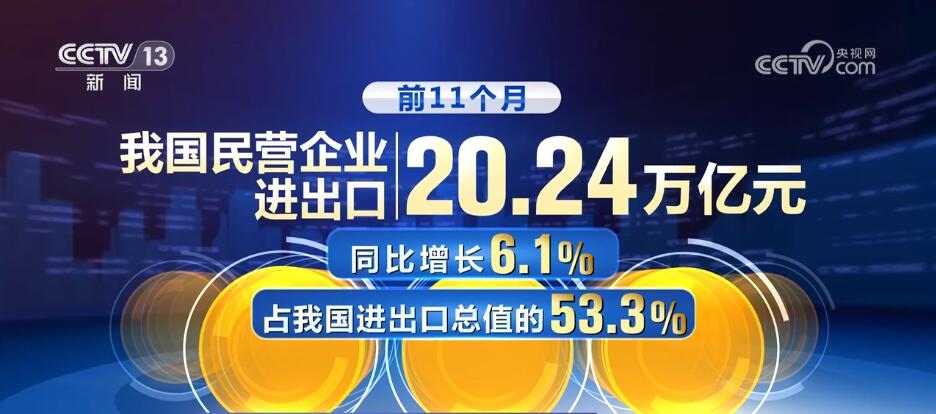 前11個月,我國民營企業(yè)進(jìn)出口20.24萬億元,同比增長6.1%,占我國進(jìn)出口總值的53.3%,提升3.1個百分點。同期,上海、江蘇、浙江、安徽等長三角區(qū)域合計進(jìn)出口13.87萬億元,同比增長0.6%,其中出口同比增長1%,拉動同期我國出口增長0.4個百分點,強(qiáng)勁活躍的增長極功能不斷鞏固提升。???????