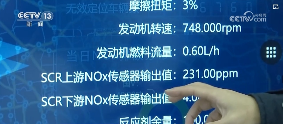 在另外一間實(shí)驗(yàn)室,這塊大屏幕連接著全國308萬國6柴油車,每輛車發(fā)動(dòng)機(jī)的工作狀態(tài)和污染物的排放裝置是否正常運(yùn)行一目了然。