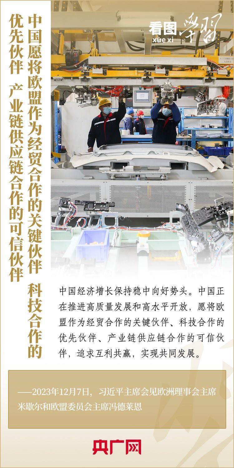 12月7日,國(guó)家主席習(xí)近平會(huì)見(jiàn)來(lái)華舉行第二十四次中國(guó)—?dú)W盟領(lǐng)導(dǎo)人會(huì)晤的歐洲理事會(huì)主席米歇爾和歐盟委員會(huì)主席馮德萊恩,雙方就事關(guān)中歐關(guān)系的戰(zhàn)略性問(wèn)題,以及中歐各領(lǐng)域?qū)υ捄献?、雙方重點(diǎn)關(guān)切、全球治理、國(guó)際和地區(qū)熱點(diǎn)問(wèn)題等深入坦誠(chéng)交換看法,并就一系列問(wèn)題達(dá)成重要共識(shí)。今年是中歐建立全面戰(zhàn)略伙伴關(guān)系20周年,習(xí)主席強(qiáng)調(diào),中歐關(guān)系具有戰(zhàn)略意義和世界影響,關(guān)乎世界和平、穩(wěn)定、繁榮。一起來(lái)學(xué)習(xí)!
