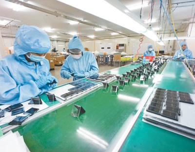 龍江工業(yè)園內(nèi),方正電機(jī)(越南)有限責(zé)任公司車間里的當(dāng)?shù)貑T工正在工作。黎國(guó)忠攝