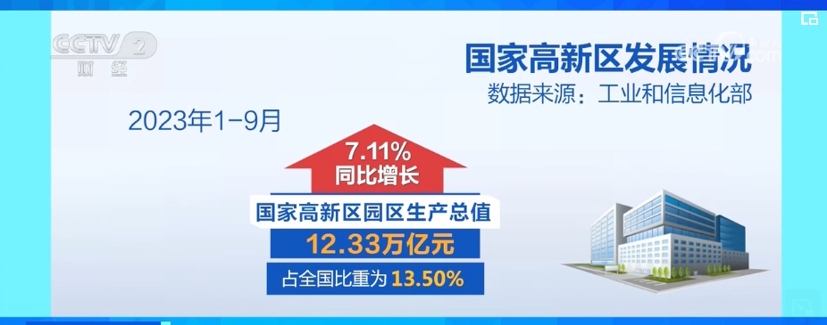 2023年前三季度,國(guó)家高新區(qū)園區(qū)生產(chǎn)總值為12.33萬億元,同比增長(zhǎng)7.11%,占全國(guó)比重為13.50%,集聚了全國(guó)1/3的高新技術(shù)企業(yè)和2/3的科創(chuàng)板上市企業(yè)。