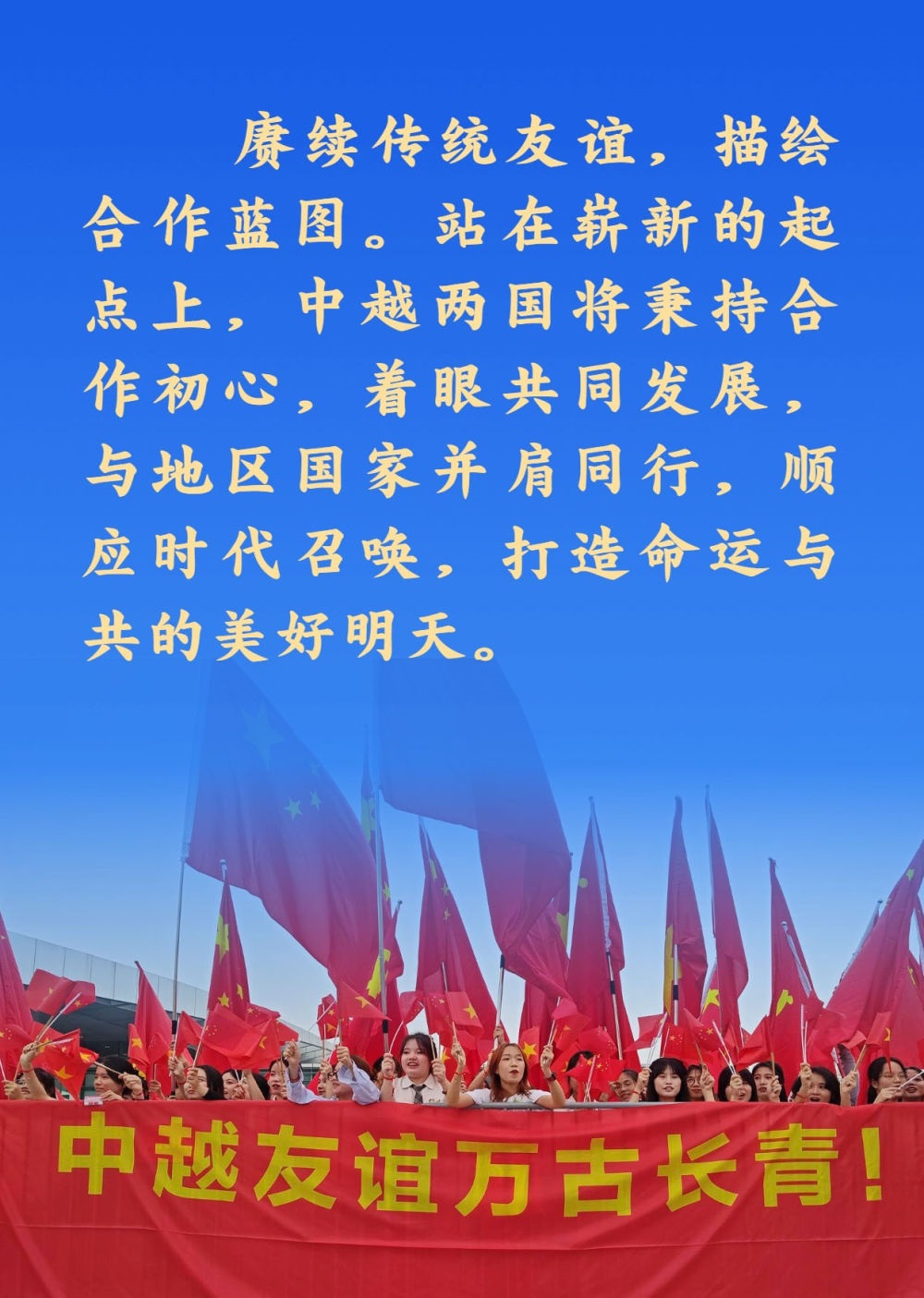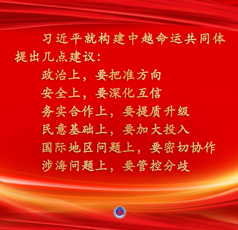 兩位總書記都認(rèn)為,中越作為友好近鄰,理想相同,理念相通。作為好鄰居、好伙伴、好兄弟、好同志,中越構(gòu)建具有戰(zhàn)略意義的命運(yùn)共同體具有天時(shí)、地利、人和的獨(dú)特優(yōu)勢(shì)。雙方應(yīng)該繼承老一輩領(lǐng)導(dǎo)人締結(jié)的傳統(tǒng)友誼,共同努力構(gòu)建命運(yùn)共同體,走好各自的現(xiàn)代化道路,實(shí)現(xiàn)互利共贏、美美與共,造福兩國人民,也為地區(qū)和平與繁榮作出積極貢獻(xiàn)。