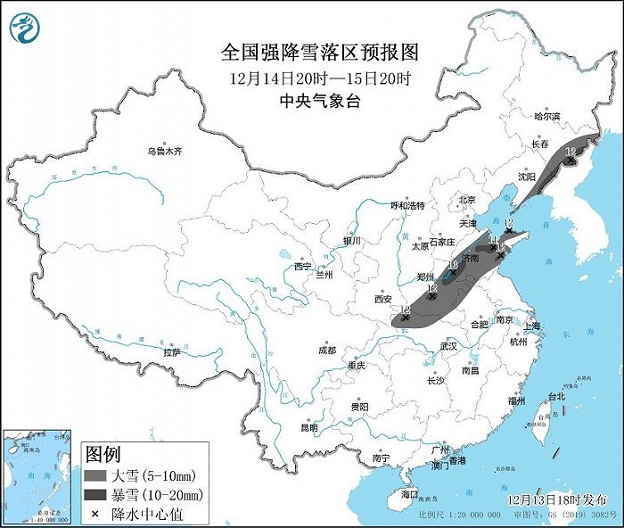 預(yù)計12月14日20時至12月15日20時,湖北西北部、河南中東部、山東大部、遼寧東部、吉林東部等地有大雪,局地有暴雪(10~13毫米)。上述部分地區(qū)新增積雪深度5~10厘米,局地可達(dá)15厘米以上。