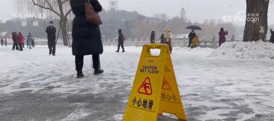 北海公園信息傳媒科副科長(zhǎng) 張磊:主要是在門(mén)區(qū)、洗手間以及重點(diǎn)的景區(qū),同時(shí)我們也設(shè)置了“小心地滑”的這種提示牌130余處,此次降雪時(shí)間由于比較長(zhǎng),公園也采用了“機(jī)械+人工掃雪”的這種方式,爭(zhēng)取做到了隨掃隨清,保證主路的暢通。
