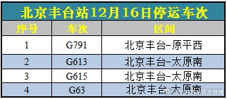 央視網(wǎng)消息:據(jù)北京西站官方微博消息,受降雪影響,12月16日北京西站、北京豐臺(tái)站部分列車臨時(shí)停運(yùn)。已購(gòu)買(mǎi)停運(yùn)列車車票的旅客,可于30日內(nèi)辦理全額退票手續(xù)。請(qǐng)廣大旅客合理安排出行,關(guān)注車站公告或12306網(wǎng)站信息。