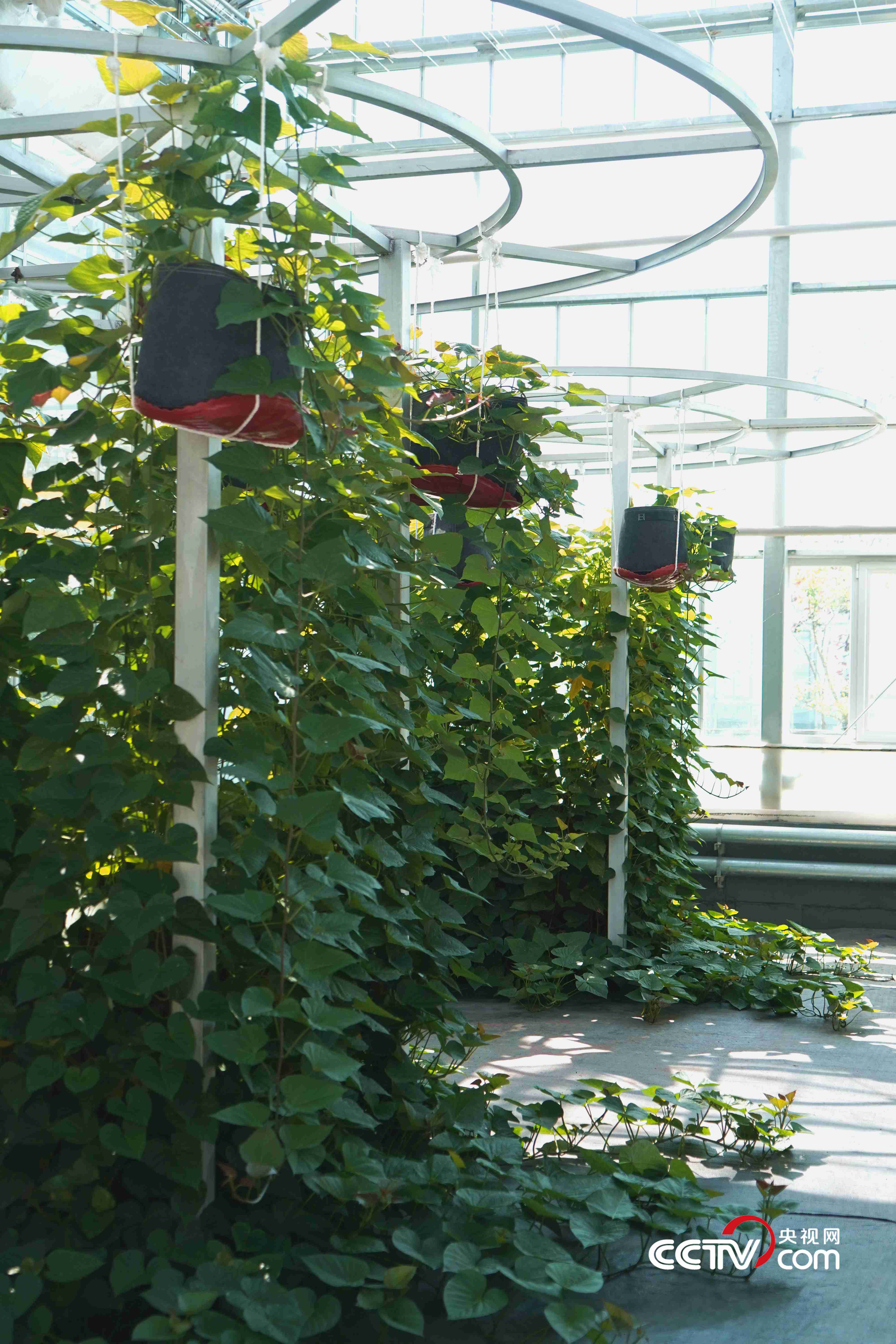 空中紅薯則利用深液流栽培模式,將紅薯由傳統(tǒng)的土壤栽培轉(zhuǎn)變?yōu)樗耘嗟哪J?。陸璐表示,其特點體現(xiàn)在水生根系能為植株提供充足的水肥,壓蔓產(chǎn)生的不定根成為儲藏根,實現(xiàn)了根系的分工合作,能夠達(dá)到一年種植多年采收的效果。“據(jù)測算,單株冠幅在60平方米的‘紅薯樹’一年可產(chǎn)1200多斤的紅薯。”這種栽培模式不僅能帶來經(jīng)濟(jì)效益,在農(nóng)業(yè)觀光、科普教育方面也有獨特價值。