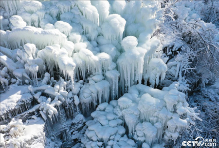 山東棗莊,受強冷空氣影響,山崖上出現(xiàn)晶瑩剔透的冰掛景觀。