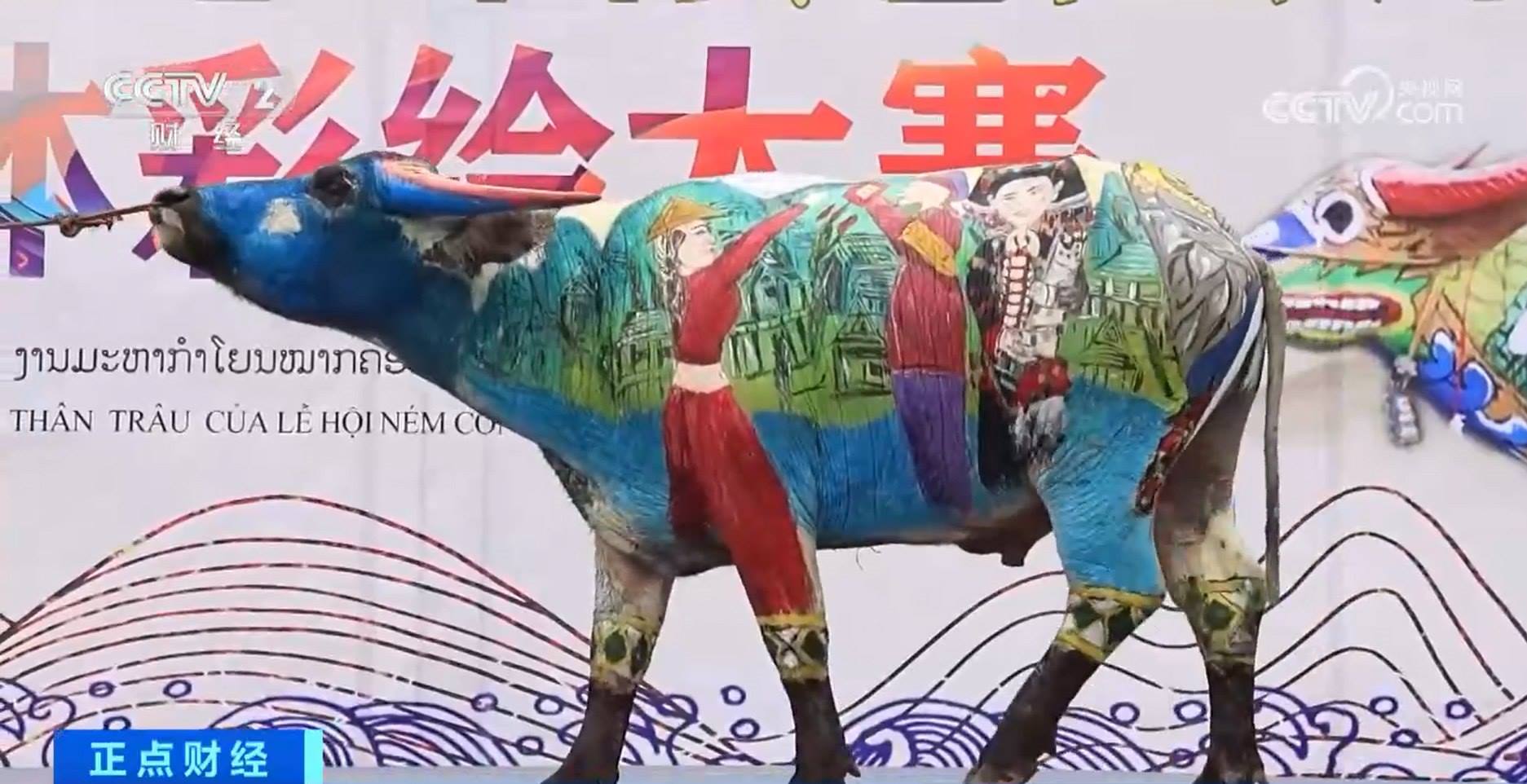 央視網(wǎng)消息:云南江城縣與越南、老撾兩國接壤,被稱作“一城連三國”。這兩天,江城縣正在舉辦三國丟包節(jié),其中獨(dú)具民族特色的國際牛體彩繪大賽吸引了不少市民目光。46頭耕牛被繪上了形象生動(dòng)、五彩斑斕的圖案,登上舞臺(tái)一決高下。