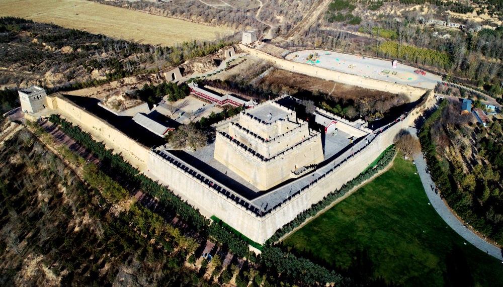 位于陜西省榆林市的鎮(zhèn)北臺(tái)(無(wú)人機(jī)照片,2023年11月9日攝)。