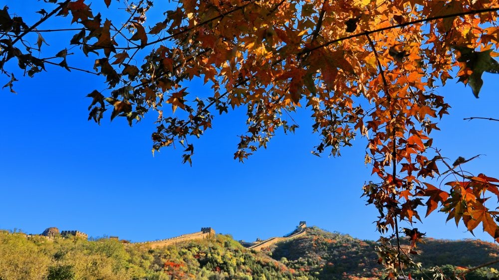 北京八達(dá)嶺長(zhǎng)城秋色(2021年10月27日攝)。